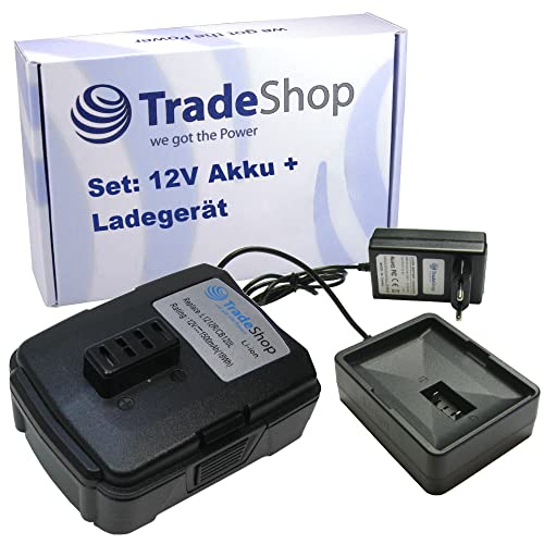 Trade-Shop set erbjudande: Li-Ion batteri 12 V/1 500 mAh laddare strömförsörjning kompatibel med AEG kompatibel med Ryobi 30164002 130503008 513200046 BPL1213 BPN1213 RB12L13