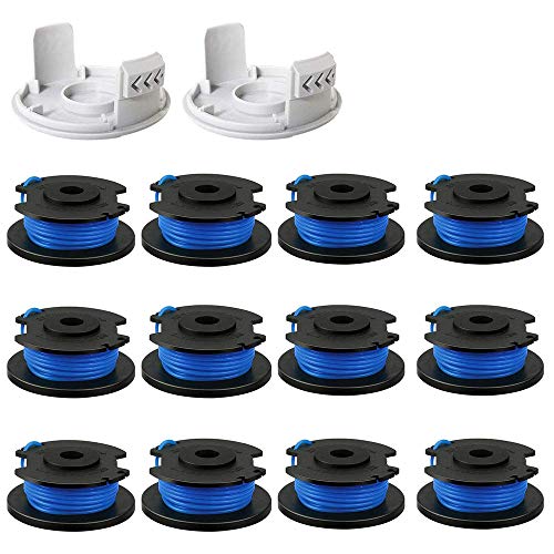 CDIYTOOL Strängtrimmer ersättningsspole linje, 0,10" automatisk matning ersättningsspolar för Ryobi One+ AC14RL3A 18V, 24V, 40V, trådlös strängtrimmer ogräs ätare spolar linje (12 spole + 2 lock), blå