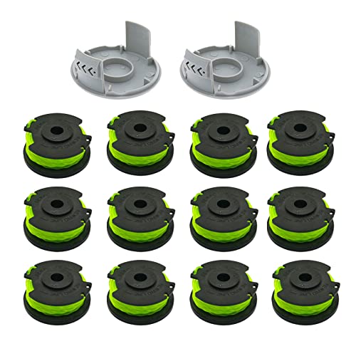 AC14RL3A sträng trimmer spole ersättning för Ryobi One+ AC14RL3A 18v, 24v och 40v sladdlösa trimmers, 3,4 m 0,075 cm automatisk matning sladdlös ogräsätare spollina med 522994001 lock (12 spolar + 2 lock)
