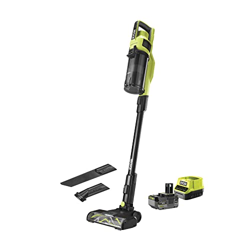 RYOBI 18 V ONE+ borstlös sladdlös golvhanddammsugare RSV18BL-1C40G (dubbel cyklonal HEPA-12-filtrering, 90 watt sugkraft, luftflöde 900 l/min, inkl. 1 x 18 V 4,0 Ah batteri och laddare)