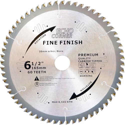 Echo Corner Cirkelsågblad 165 mm 20 mm/16 mm borrning, 60 tänder för motorsåg cirkelsåg finskuren ram trä MDF plast fanér laminat, kompatibelt med Dewalt, Makita, Ryobi, Bosch