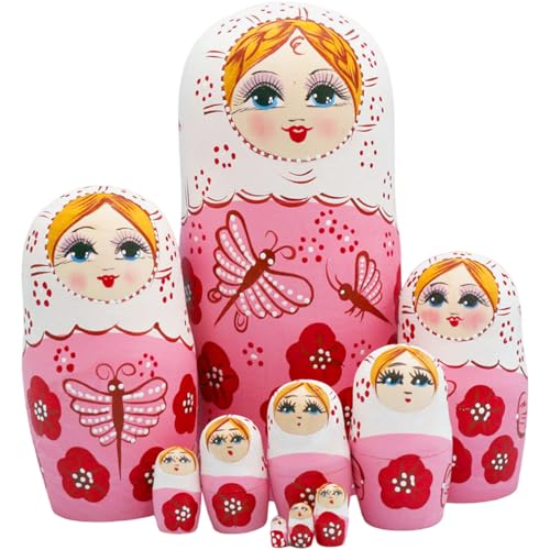 Jorzer Ryska häckande dockor 10-delat set med Matryoshka trädockor med charmigt utan ansträngning och häckande tryck för samling dekoration