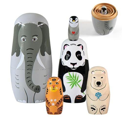 5 Lager Ryska Matroschka Dockor - Trä Djur Bo Dolls för Fester, Festivaler, Vardagsrum och Sovrumsdekorationer