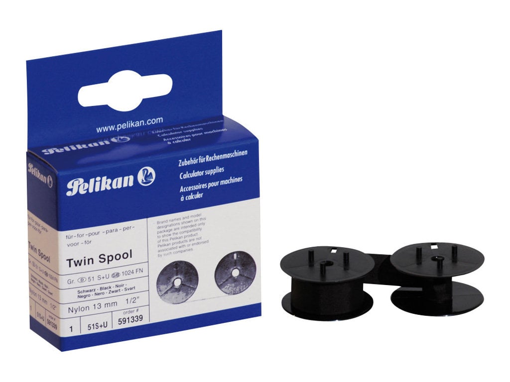 Pelikan Gr. 51 S+U - Farvebånd Spole 71 Db Silke Sort - 591339 - 13Mm - Brother, Sharp, Canon, Casio, Olympia
