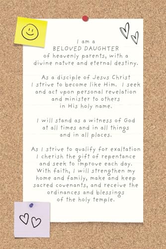 Inspirational Notebook: LDS Young Women’s Theme | Cute Cork Board Look With Sticky Notes Smiles and Hearts | Yellow, Purple, Cream | 100 pages college ruled | 6 X 9 | For teens, adults, children