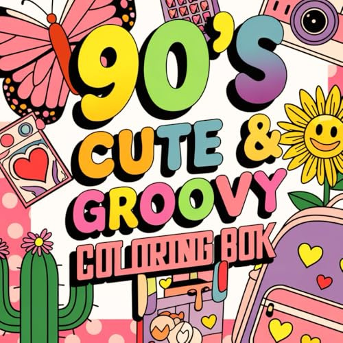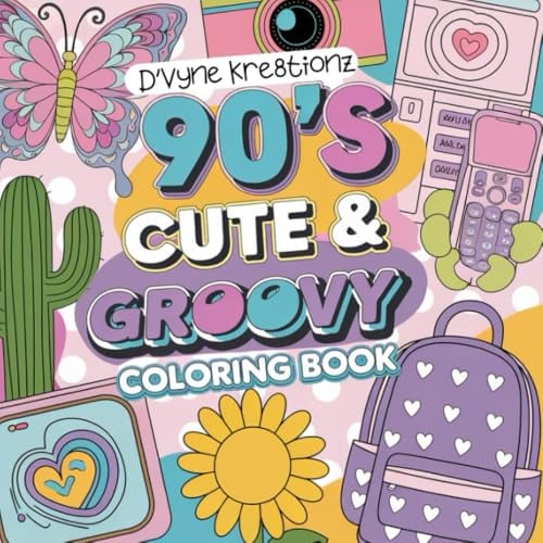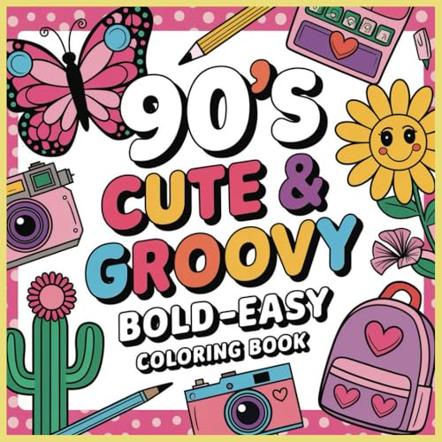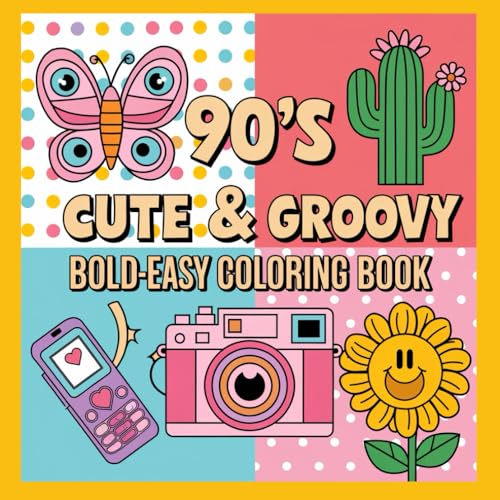 Bold and Easy 90's Cute & Groovy Coloring Book:: For Adults and Children, Bold, Easy, Designs for Relaxing with Big Pictures of the 90's Groovy Theme.