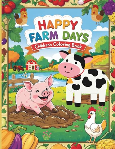 Happy Farm Days: Children`s Coloring Book: Cute and Relaxing Farmyard Coloring Book with Bold Outlines — Adorable Piglets, Cows, Chickens & More (Ages 3–8)