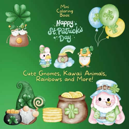 Mini Coloring Book HAPPY ST PATRICK’S DAY CUTE GNOMES, KAWAII ANIMALS, RAINBOWS & MORE!: 7.5 x 7.5 Pocket Size For Travel On The Go, Easy Irish ... for Beginners, Seniors, Adults and Kids