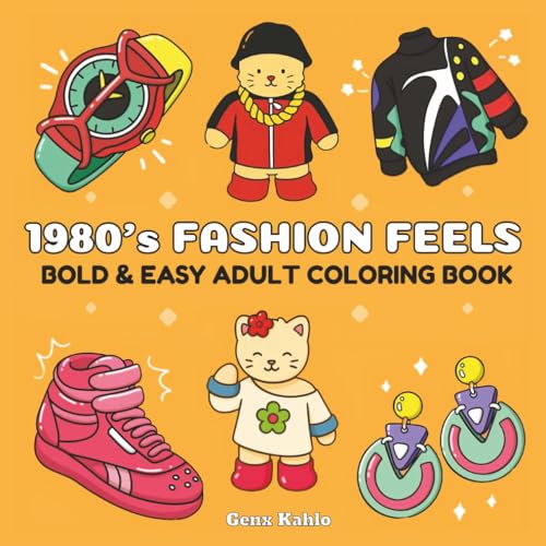 1980's Fashion Feels: Adult Coloring Book for Stress-Relief. Groovy 1980s Designs plus Cute Animal Drawings. Cozy Nostalgic Vibes. (Bold & Easy Coloring)