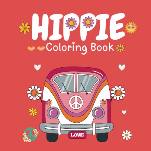Hippie Coloring Book: Bold and Easy 70's and 80's Nostalgia. Cute, Groovy, Psychedelic,Trippy and Retro Coloring Fun For Kids and Adults. 8.5x 8.5in