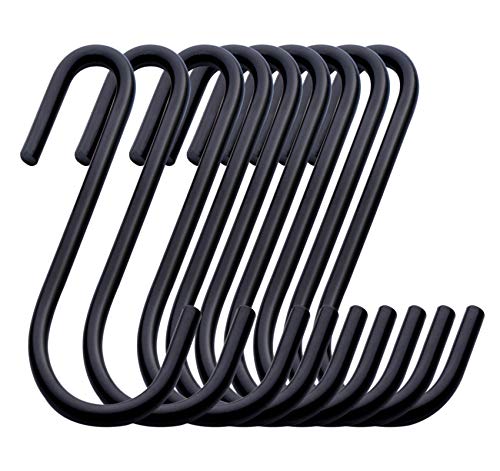 Baoswi 10-pack stora kraftiga S-krokar 15 cm svart gummibelagt metall S-krok för upphängning, halkfri vinylbelagd garderob S-krokar anti-rost krokar för kök badrum sovrum kontor