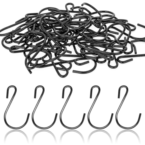 Hängande krokar, ilauke 32 S-krokar 6 cm rostfritt stål S-form metallkrokar, multifunktionell svart S-krok, dubbel kökskrok för upphängningshängare köksredskap