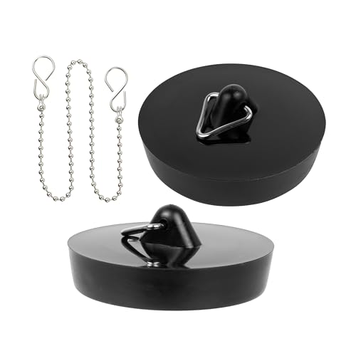 Universalpropp med kedja, 3-pack, svart, Ø 45,5 på 42 mm upptill på undersidan, PVC-avtappningsplugg för 1 3/4" tums ventiltoppar, diskbänk Gummiproppkedja med S-krok, badkarspropp