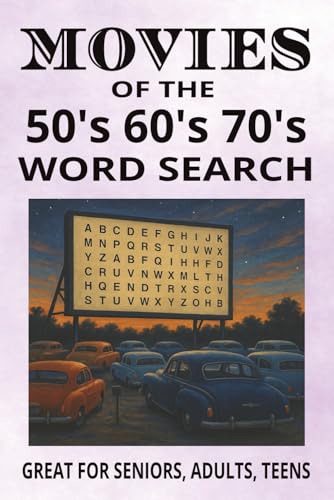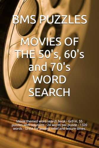 MOVIES OF THE 50's, 60's and 70's WORD SEARCH: Movie themed word search book - 6x9 in, 55 puzzles with solutions - 24 words per puzzle - 1320 words - Great for anxiety relief and leisure times.