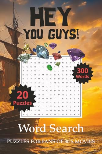 Hey You Guys! Word Search Puzzle Book: Word Searches with easy to read print about treasure hunting, pirates, 80’s movie references and more | 6x9 ... for vacations, Holidays and Spare Times