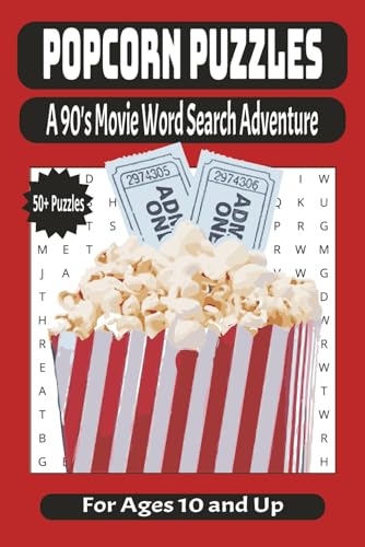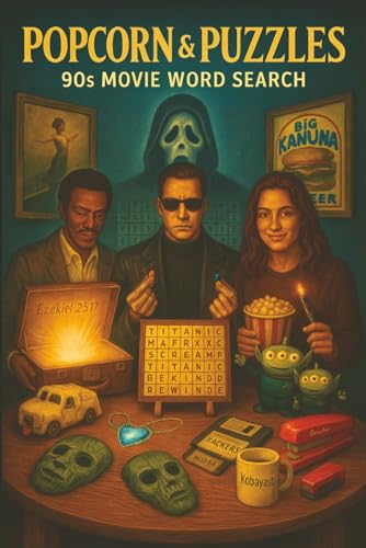 Popcorn & Puzzles: 90's Movie Word Search: Love ’90s Movies on VHS or DVD? Dive into Film-Themed Word Search Puzzles Featuring Iconic Prop backdrops! ... Gift for Vacations, Holidays, and Downtime
