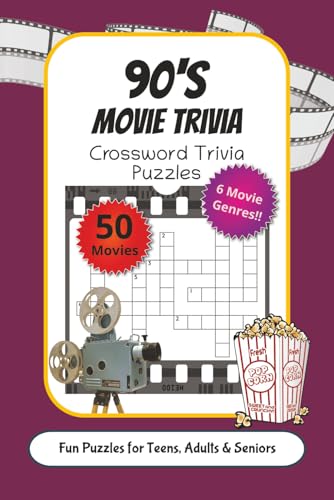 90's Movie Trivia: Crossword Trivia Puzzles: Crossword Puzzles with Easy to Read Print about Action, Sci-Fi, Thriller and More | 6x9 inches, 114 pages ... Gift for Vacations, Holidays, and Movie Buffs