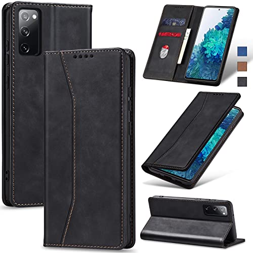 Jasonyu Skal för Samsung Galaxy S20 FE,Läder Vikbart Skyddande Fodral [Hölster, Magnetisk, kortfack, stativfunktion] Wallet Leather Case Cover för Samsung S20 FE (Svart)