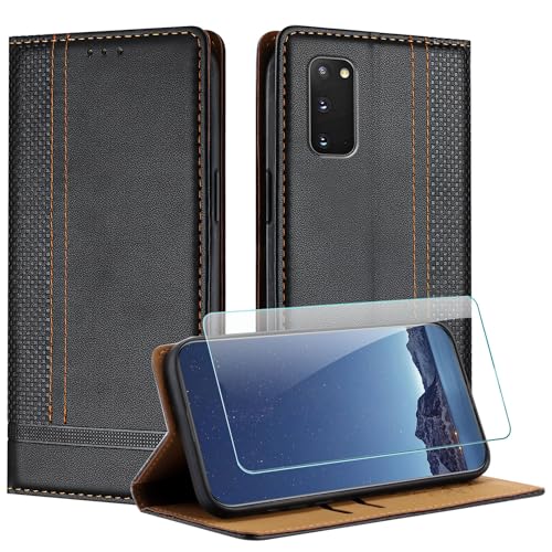 JayModCase Fodral för Samsung Galaxy S20 med skyddsfilm, mobiltelefonfodral i PU-läder med kortfack och stativfunktion Magnetisk Skal för Samsung S20 - Svart