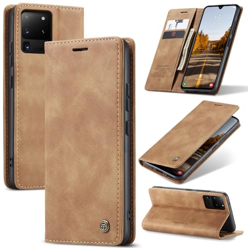 Samokor Fodral för Samsung Galaxy S20 Ultra 5G, Mobilbokfodral PU-läderfodral flip-Plånbok Kortplats Stativfunktion Magnetisk Stötskydd för Samsung Galaxy S20 Ultra, Brun