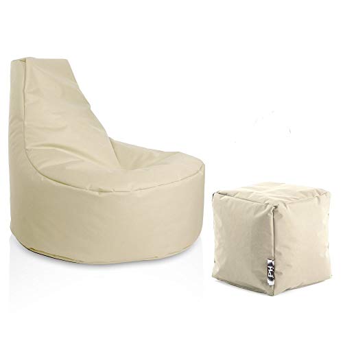 PATCH HOME Gamer fåtölj sittsäck inkl. kub saccosäck set Ø 80 cm, 30 cm sitthöjd, 90 cm höjd 35 x 35 cm krämfärgad