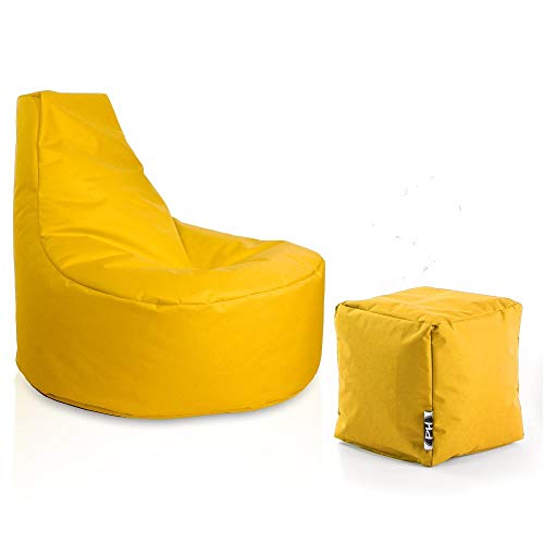 PATCH HOME Gamer fåtölj sittsäck inkl. kub saccosäck set Ø 80 cm, 30 cm sitthöjd, 90 cm höjd 35 x 35 cm kub gul