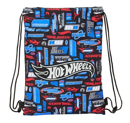 HOT WHEELS - Junior platt säck, ryggsäck, idealisk för barn i olika åldrar, bekväm och mångsidig, kvalitet och styrka, 26 x 34 cm, Flerfärgad, M, Avslappnad