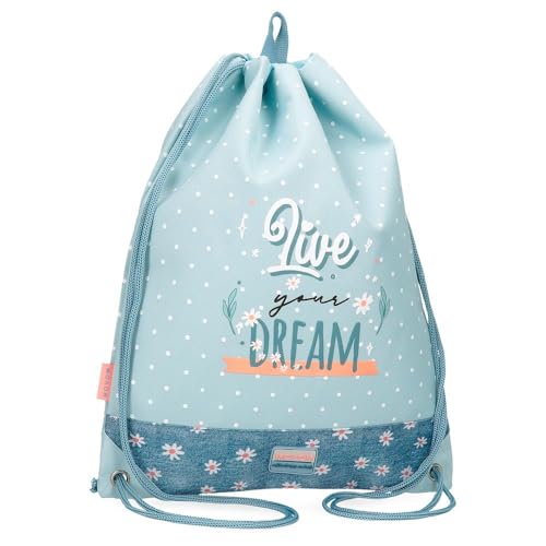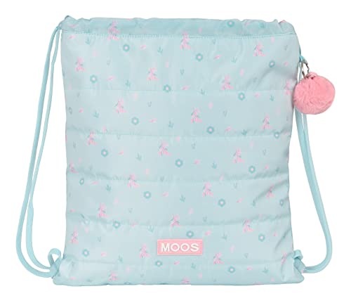 MOOS - Stor platt säck, Ryggsäck, Perfekt för barn i olika åldrar, bekväm och mångsidig, kvalitet och styrka, 35x40 cm, Turkosblå, Turkos blå, Estándar, tillfällig