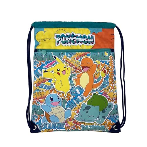 CYPBRANDS Pokémon-ryggsäck, säck, väska med rep, urban färger, flerfärgad, pikachu, charmaner, spruta, bulbasaur, officiell produkt