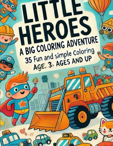 Little Heroes: A Big Coloring Adventure – Fun with Cars, Excavators, Animals & Superheroes: 35 Fun and Simple Coloring Pages to Spark Creativity in Kids Ages 3 and Up