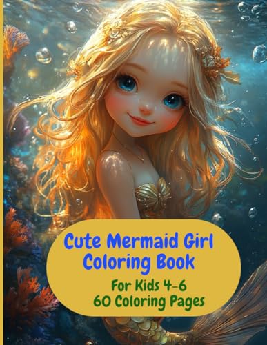 Cute Mermaid Girl Coloring Book, For Kids 4-6: A Magical Underwater Coloring Adventure for Kids! Engaging & Fun Designs, Big, Easy (8.5 x 11)