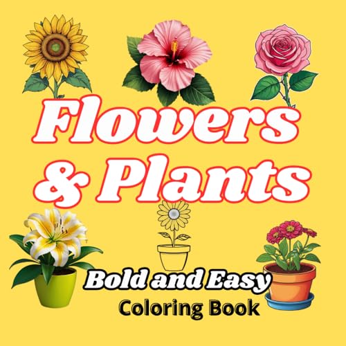 Bold and Easy Flowers & Plants Coloring Book: A Fun Coloring Adventure for Young Nature Lovers, 60 Big and Simple Designs for Kids and Adults