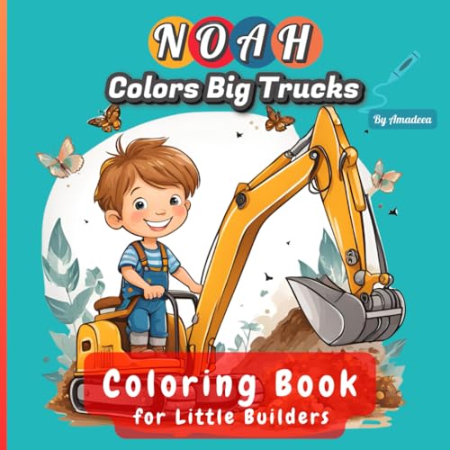 Noah Colors Trucks! Construction Vehicles Coloring Book for Kids Ages 4-8: Big Trucks & Mighty Machines - A Fun Adventure for Little Builders | Excavator, Buldozer, Dump Truck, Crane, Compactor & More