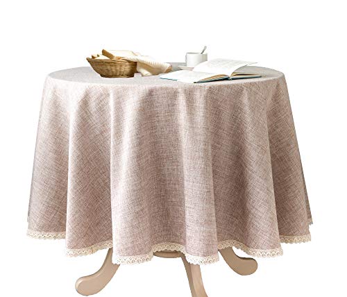 GLORY SEASON Linne rustik säckväv tvättbar bordsduk, solid tung vikt 178 cm runt överlägg spetskant bordsskydd för kök middag dekoration