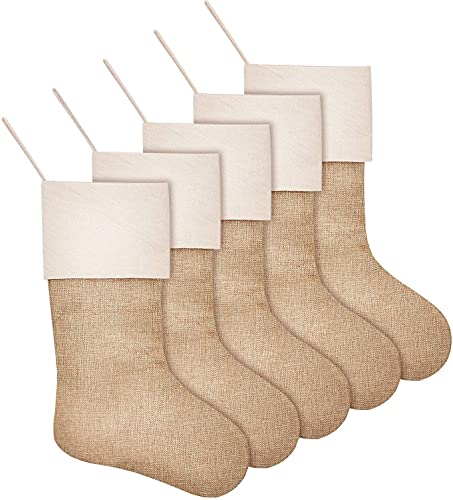 SAVITA 5 stycken julstrumpor, 40,64 cm julöppen spis hängande strumpor för juldekorationer, säckväv julstrumpor som gåva, sockerrör, gör-det-själv hantverk