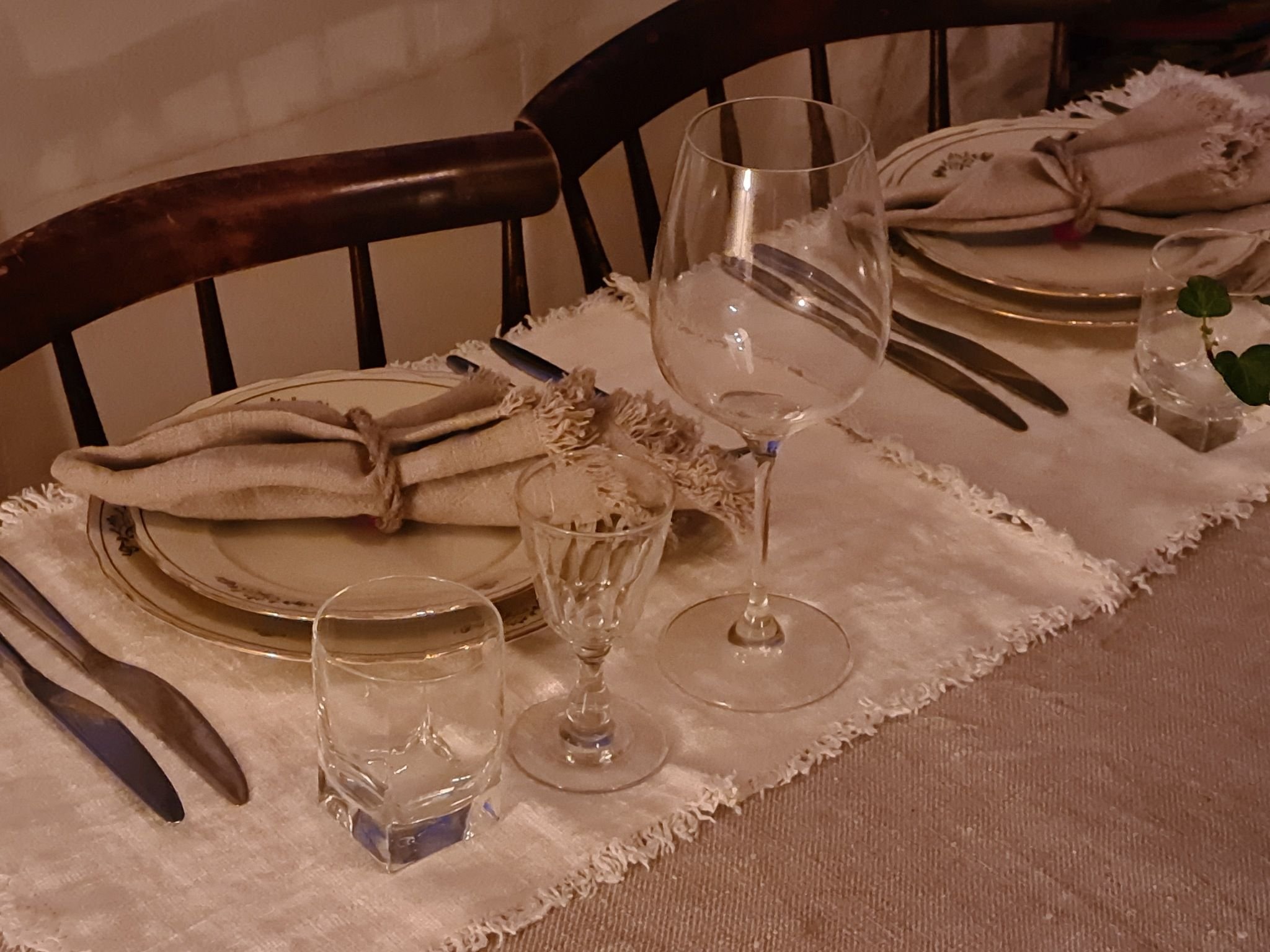 GLORY SEASON Linne rustik säckväv tvättbar bordsduk, solid tungvikt solbränd 55 x 94 rektangel överlägg spetskant bordsskydd för kök middag dekoration