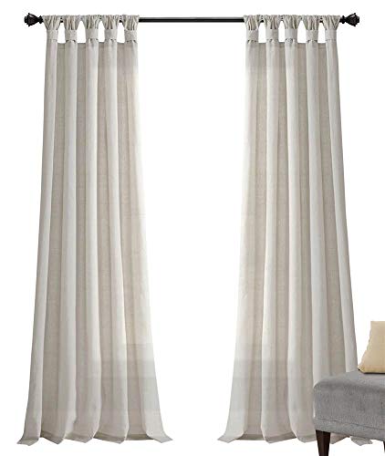 Luxuös dekor säckväv knuten flik topp fönster gardin panel par, 95 tum x 45 tum, lätt linne
