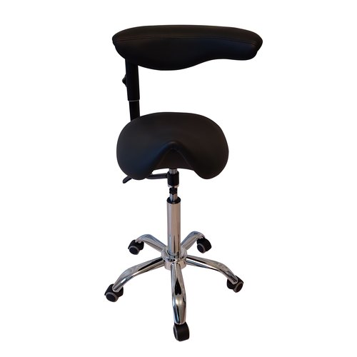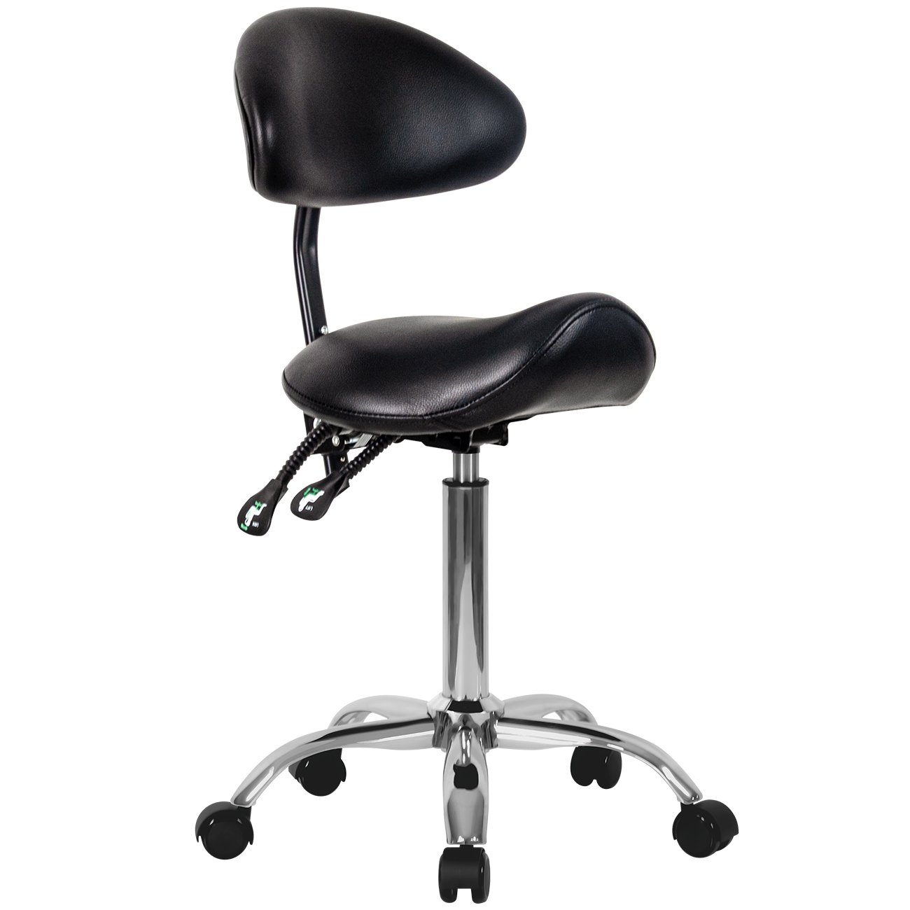 Antlu sadelstol med ryggstöd, ergonomisk estetisk pallstol för salongstatuering spa medicinsk tandläkarklinik (med justerbart ryggstöd, svart)