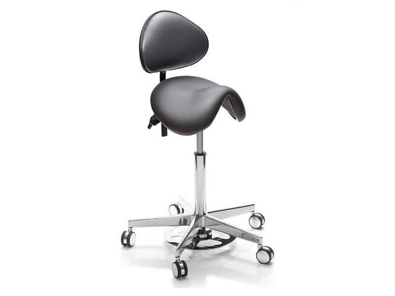 Sadelstol Polo M standard med ryggstöd och fotaktivator