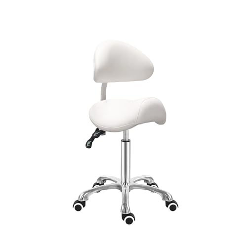 Antlu Sadelstol med ryggstöd – ergonomisk estetiker säte sadelstol för salong tatuering spa medicinsk tandläkarklinik (med justerbart ryggstöd, vit)