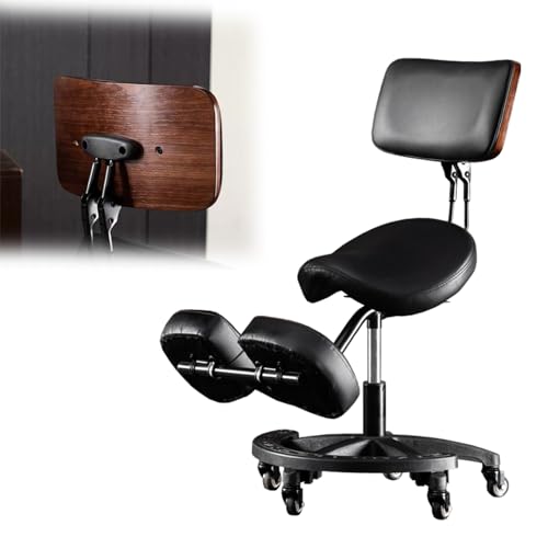 MJBDCVN Sadelstol ergonomisk sadelhållningsstol justerbar höjd, vinklad knästol med ryggstöd och fotstöd, massage spa tandklinik rullande pall