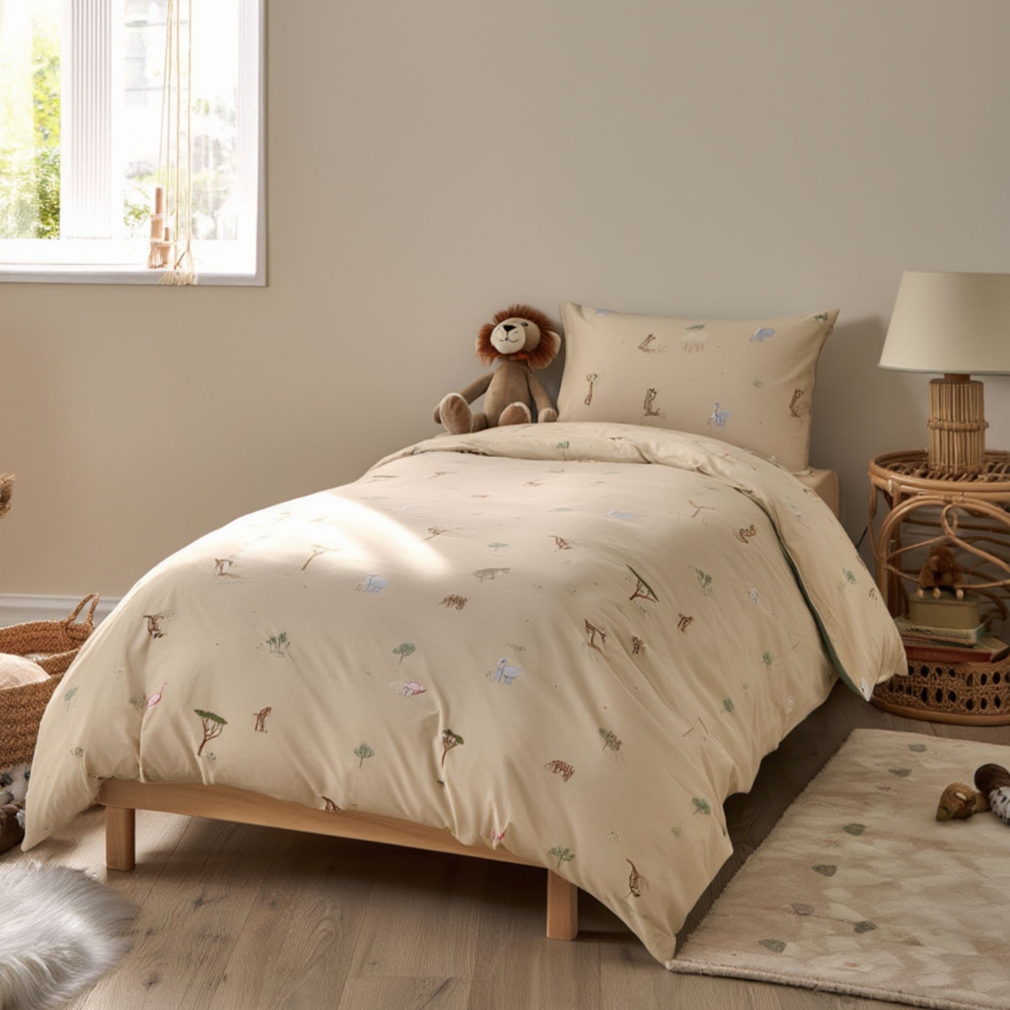 Sängkläder med djur - 100% bomull - Barnsängkläder 140x200 cm - Safari djur