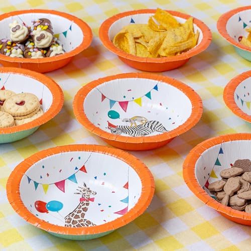 Talande bord 8 x safari-djur tema pappersskålar för flickor och pojkar, födelsedagsfest, babyshower | djungel, zoo, Madagaskar, miljövänlig engångsåtervinningsbar festartikel för barn