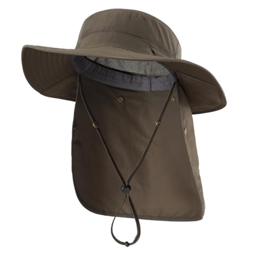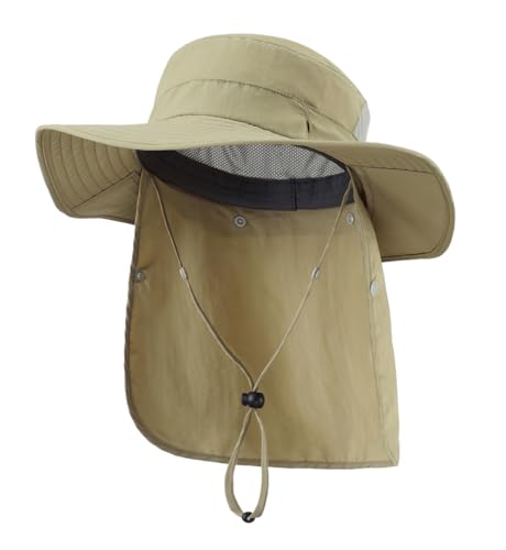 Huakunda Solhatt män kvinnor buskhattar utomhus UPF50 UV skydd safari hatt boonie hatt trädgård hatt vikbar vandringshatt fiskehatt, kaki, En Storlek