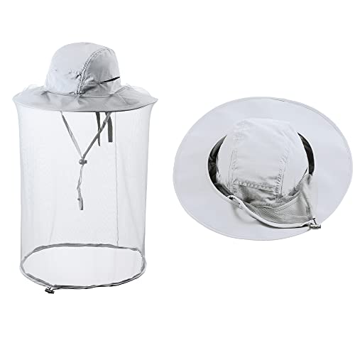 USHAKE Näthatt, safari-hatt, solhatt, hinkhatt med dolt nättyg, Grå, 7 3/8