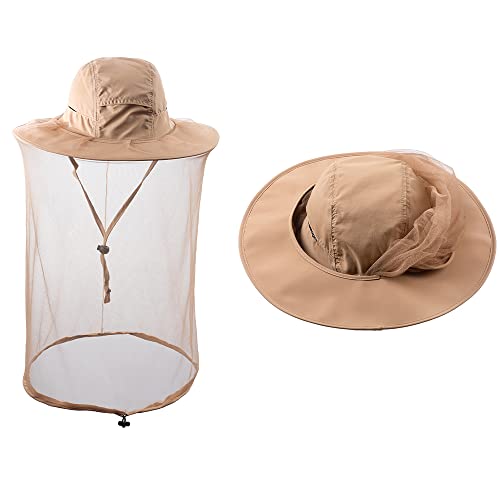 ZffXH 1/2 st insektsnät hattar, safari fiskemössa med nät ansikte nätsköld, biodlare biodling bi slöja hatt för män kvinnor, Khaki, L