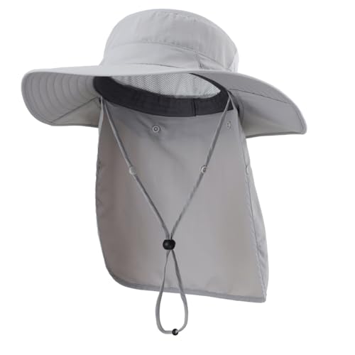 Magracy Unisex UPF 50+ brett brätte solhatt med nackklaff andningsbar safari-hatt för utomhusfiske vandring, Ljusgrå, one size