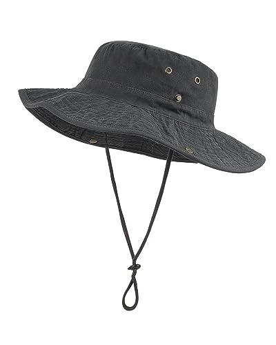 Comhats UPF 50 solhattar med brett brätte, sommarnät, UV-skydd, safari-hatt, för fiske, vandring, boonihattar med hakrem, vattentät och andningsbar, 00702_Mörkgrå, L-XL
