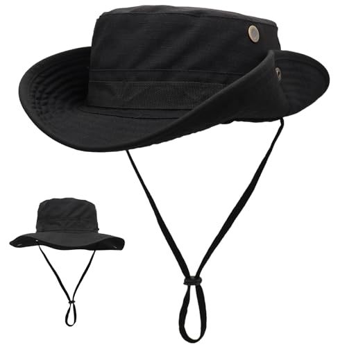 Huakunda Solhatt män kvinnor buskhattar utomhus UPF50 UV skydd safari hatt boonie hatt trädgård hatt vikbar vandringshatt fiskehatt, svart, En Storlek