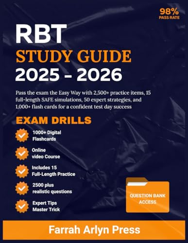 RBT STUDY GUIDE 2025-2026: Pass the exam the Easy Way with 2,500+ practice items, 15 full-length SAFE simulations, 50 expert strategies, and 1,000+ flash cards for confident test day success